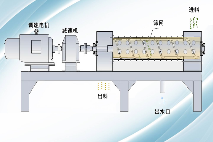酒糟脫水機是通過機械外力擠壓及壓榨把酒糟中的液體分離出去,留下固體物質(zhì),原理如下需脫水的物料從進料口進入擠壓機,物料被錐型螺旋擠壓脫水后,送至出料口,其大部分的水份從篩板濾出。從而達到脫水的目的。脫水后的物料可直接進干燥機進行干燥。對于物料品種的不同和產(chǎn)量的變化可通過調(diào)整擠壓機轉速實現(xiàn),達到脫水效果和產(chǎn)量的配合。調(diào)速電動機運轉正常后物料從進料箱均勻加入進機后的物料在螺旋旋轉葉片推動下沿軸向前進前進過程中物料受變化的螺距和調(diào)節(jié)檔板的作用形成巨大 的擠壓力使物料在外力作用下進行機械脫水水份通過篩網(wǎng)在出水口處排出脫水后的物料在出料箱處排出。
