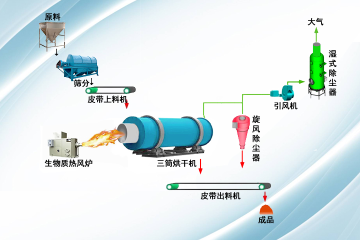 檸條烘干機設備采用三回程烘干工藝,多種周向揚料組合分布,可以根據(jù)應用需求優(yōu)化工藝