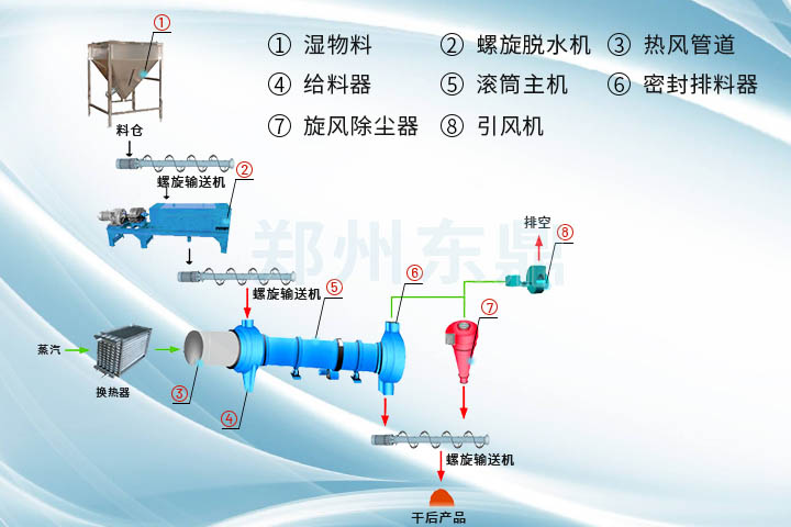 6 、具有設(shè)備面積小,有利于處理原料保濕增濕,使其熱損失量少;